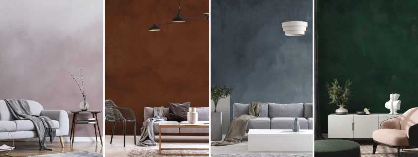 Однотонные полотна подбирают смежных цветов, схожей насыщенности. При одном оттенке, его яркость может отличаться