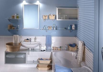 Однако если вы даже выбрали такой качественный материал, то все равно он не подойдет для мест, на которые непосредственно попадает вода: область над раковиной, области по всему периметру ванной. Эти места придется закрыть другим отделочным материалом, в тон к обоям.