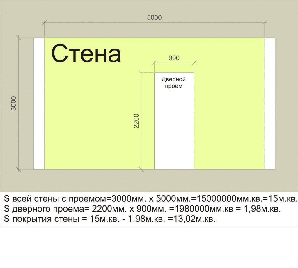 В помещении учитывается дверной проем, а так же окна. Именно их параметры вычисляют и вычитают из всех квадратных метров покрываемой поверхности.