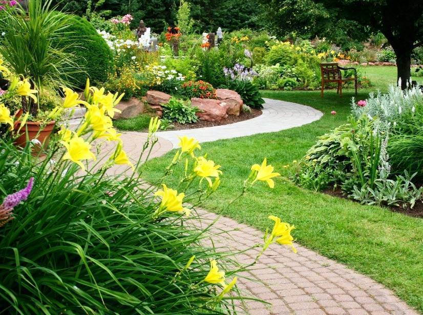 Важно для начала определить территориально, где будут находиться деревья, цветы и клумбы, а потом подобрать растения в зависимости ландшафта. Рекомендуется отталкиваться от вашего личного времени, которое вы готовы тратить на ухаживание за растениями и дизайн в целом