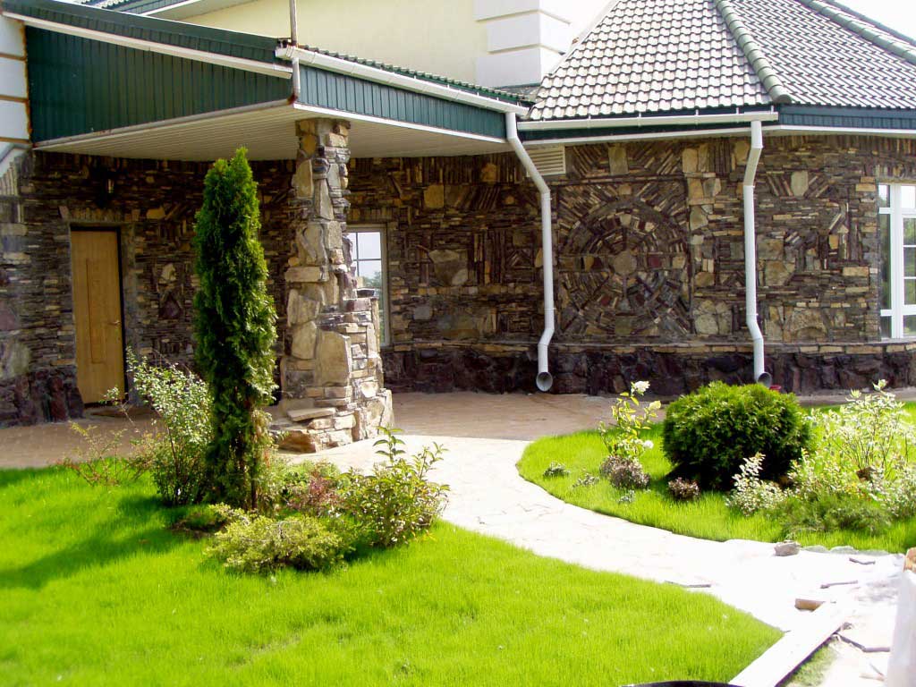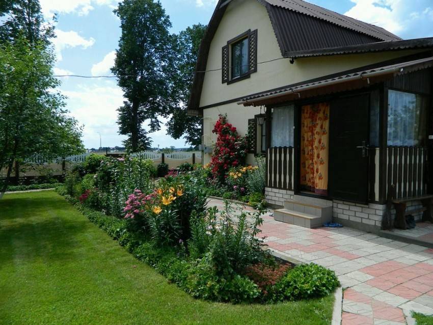 Для правильного восприятия ландшафта в целом декоративные композиции из растений должны гармонично сочетаться с домом и надворными постройками. Эта зона включает в себя вход в дом, крыльцо, дорожку от калитки