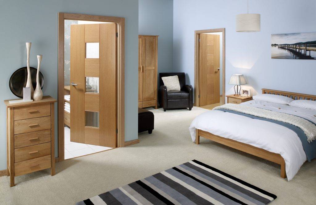 Межкомнатные двери под цвет пола — это классическое решение. Линолеум или паркетная доска должны соответствовать тональности. Но если на полу находится много ярких расцветок, например, ковер, то наиболее подходящей будет установка стеклянных дверей.