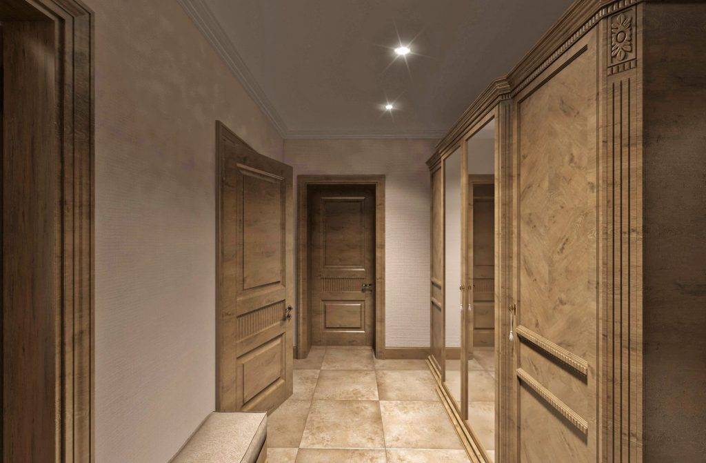 Простое решение — выбор дверей одного цвета. Особенно это актуально для полотен, которые будут устанавливаться в коридоре. Хорошо если общий интерьер выполнен в едином стиле, тогда подобрать одинаковые двери не составит труда. При выборе цвета полотен стоит опираться на стены, а, точнее, какого оттенка обои — двери должны либо контрастировать на фоне либо сочетаться с отделкой.