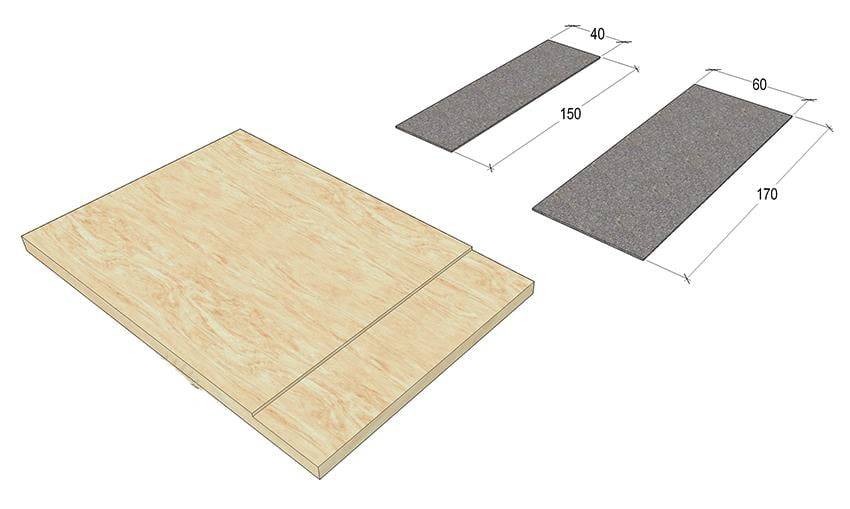- Основание — прямоугольная деревянная пластина с размерами 440*92 мм и толщиной 18 мм.
