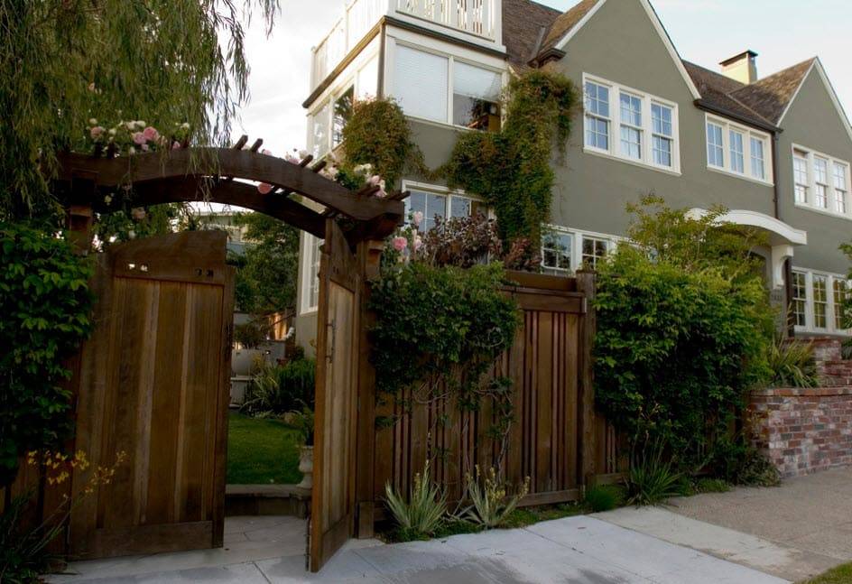 Дерево хорошо поддается реставрации, кроме того, калитку не трудно поменять, подобрав под нее оригинальный декор. Главный недостаток деревянного входа на участок – короткий срок службы (до 8 лет). Что касается привлекательного внешнего вида, то он продержится не более 3 лет. Деревянная калитка подходит для скромных и небольших дачных участков, где нет ничего ценного.