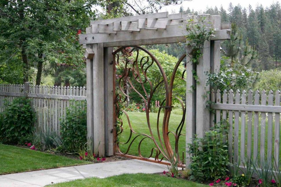 Не трудно догадаться, что калитки отличаются между собой не только по форме, типу открытия и дизайну, но и по материалу, что используется для их создания. На данный момент для этого используют различные стройматериалы, выбор которых зависит от дизайна участка и финансовых возможностей домовладельца. Самый дешевый вариант – деревянный штакетник, изысканный – чугун. Классическое решение – использование металла и древесины для создания калитки, которые зачастую дополняют кирпичом или камнем (натуральным или искусственным).