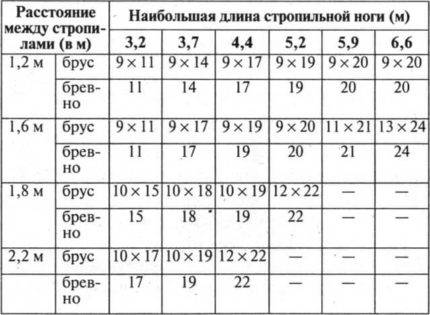 Рекомендуемые размеры стропил для разных кровельных материалов:
