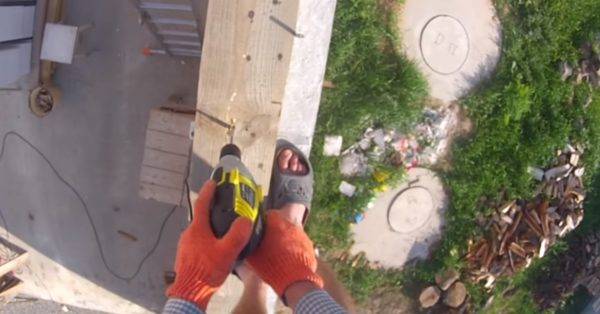 Для безопасности сразу монтируются балки перекрытия, по ним устраивается временный настил.