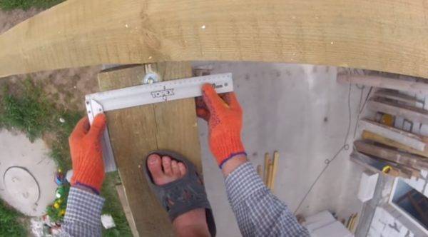- С помощью угольника или строительного уровня следует выполнить разметку запила. Его ширина должна соответствовать габаритам мауэрлата.