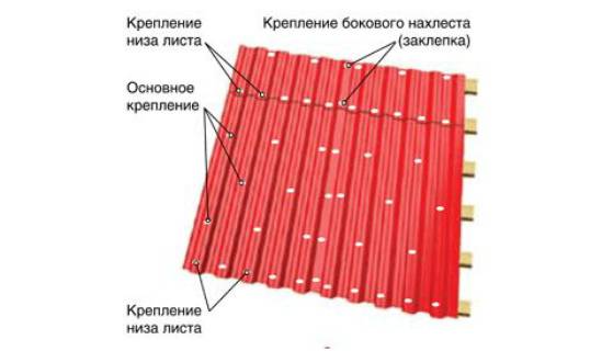 Крепление профнастила на кровлю