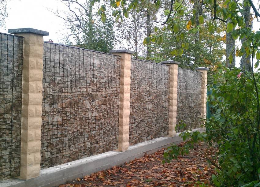 Третий вариант — габионы. В обычных условиях устройство такого забора на даче нецелесообразно — объемные конструкции занимают много места, а сетка и камень стоят недешево. Но если надо одновременно укрепить склон и оградить участок, такое решение может быть оптимальным.