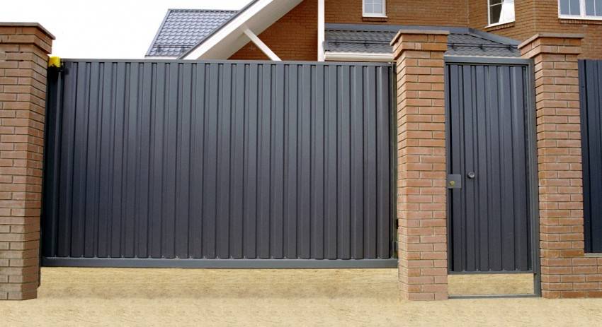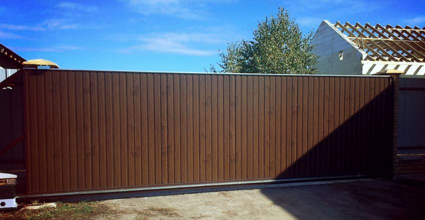 Когда обшивка секций завершена, следует приступать к установке ворот, калитки. Под ворота выбирают усиленные столбы с толщиной стенки от 3,5 мм. К ним приваривают гаражные навесы. Для лаг используют трубы сечением 20*40 мм с толщиной стенки 2 мм. Все соединения выполняют сваркой. Запорные механизмы крепят от фиксации листов.