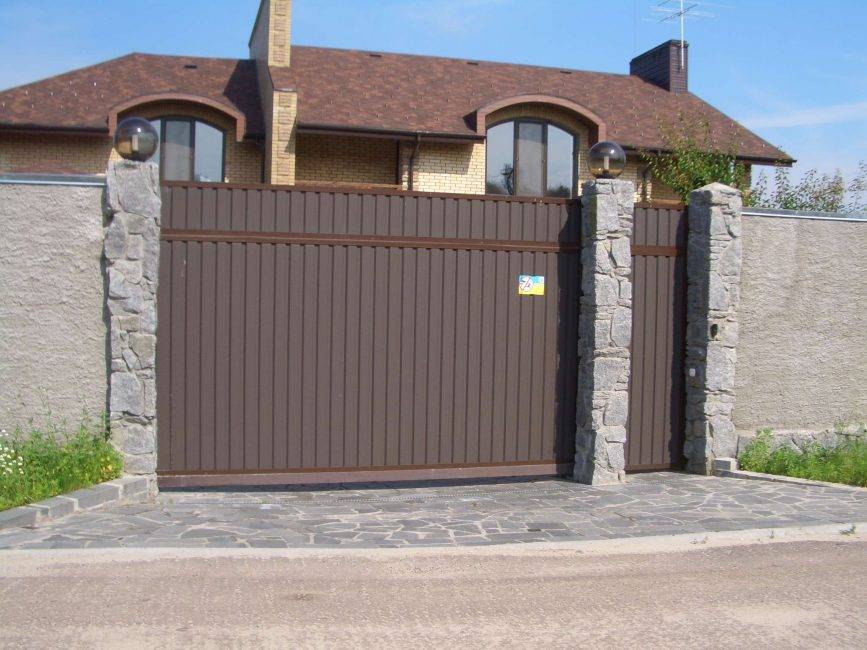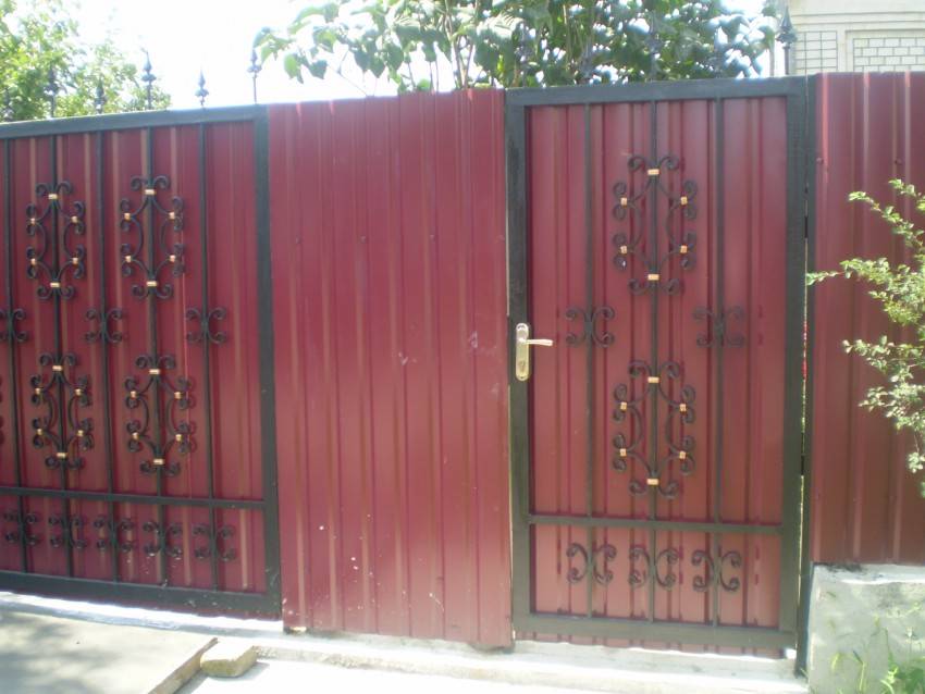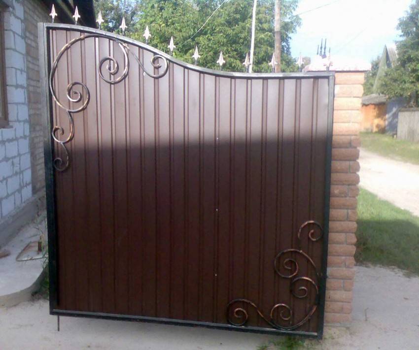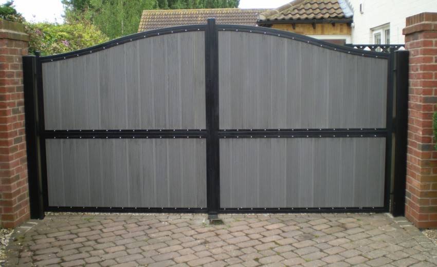 Обычно таким образом монтируют ворота, калитки или секционные пролеты. В качестве рамной конструкции используются ковка, металлический штакетник, элементы декорирования.