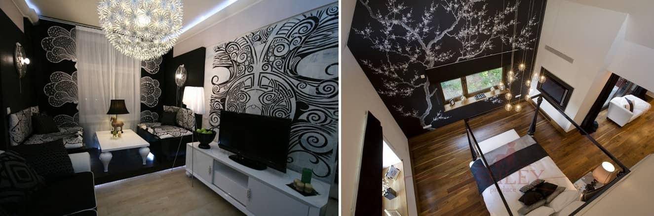 - в зависимости от используемых оттенков, их насыщенности и размера рисунка создать стильный интерьер в классическом, этническом или современном дизайне, указав на его идею;