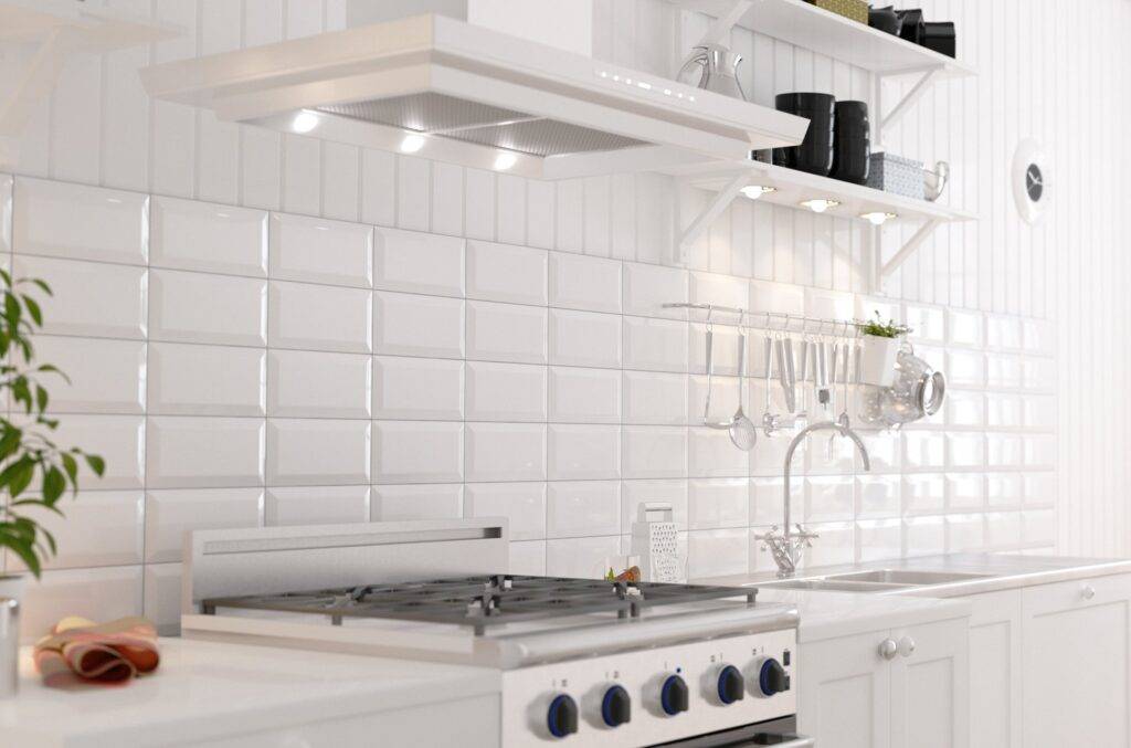 Непрактичное решение для кухни – это фартук из искусственного камня. Такой материал достаточно хрупкий, его сложно отмыть от жира и пыли. Белая затирка на стыках плитки тоже потребует усилий в уходе. Лучшими материалами для защиты стены будет керамическая плитка или закаленное стекло, но без рельефов.