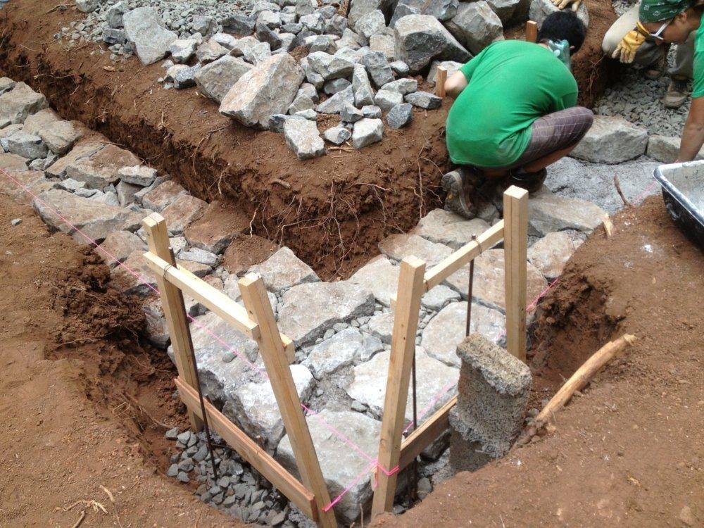 Потом мы копали ещё день и дошли до водоупора — слоя почвы, который почти не пропускает воду. Если постучать по нему лопатой, будет звук, как будто бьёшь ломом по асфальту зимой: аж лопата отскакивает. Колодец был готов, оставалось только построить колодезный домик сверху.