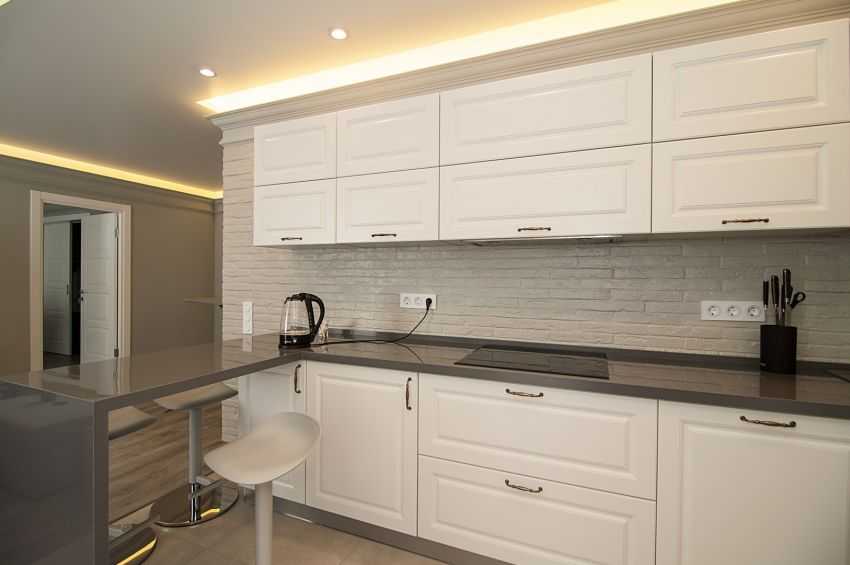 - кухни неправильных форм. В таких помещениях присутствуют ниши и выступы. В них стоит установить бытовую технику или мебель. Для таких планировок мебель делается на заказ, исходя из особенностей помещения и пожеланий жильцов.