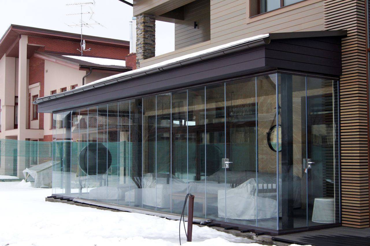 Данный тип отличается большим удобством и позволяет обеспечить отличное освещение террасы, защищая при этом от таких неблагоприятных погодных факторов, как ветер и осадки. В зависимости от личного бюджета и назначения помещения, жильцы могут выбрать холодный, полутеплый или теплый вариант.