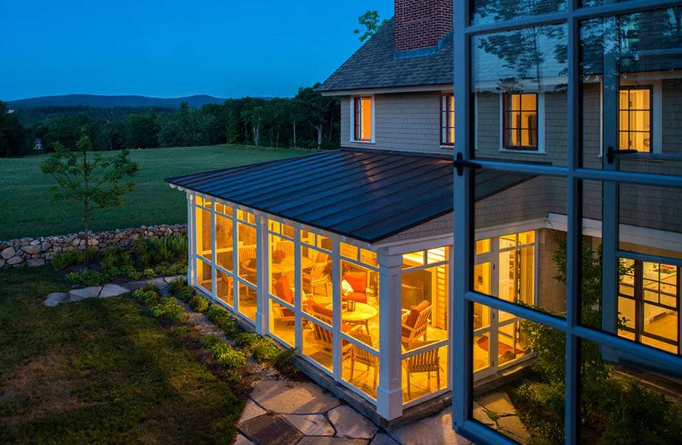 Теплое остекление веранды позволяет использовать ее в зимнее время годаИсточник evrofasad.by