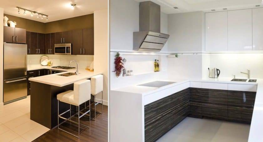 Также существует дизайн маленькой кухни, в котором используется вариант подсветки рабочей зоны светодиодной лентой, которая помогает не только в эффективности рабочего процесса, но и выполняет эстетическую функцию, так как данный тип освещения можно индивидуализировать под вкусы заказчика, в зависимости от того, какой дизайн вы выбрали для кухонного помещения.