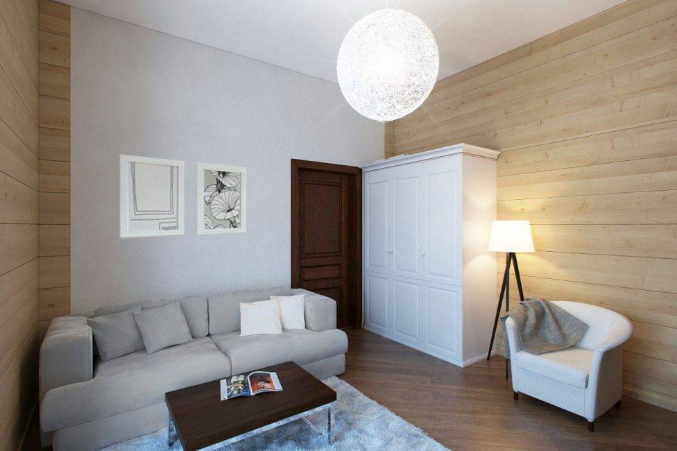 Чтобы визуально не уменьшить пропорции комнаты, нужно правильно подобрать фактуру и оттенок дерева. Для небольших пространств подойдут такие оттенки, как белый, молочный, светло-серый, беж, экрю. Именно эти цвета расширяют пространство и увеличивают высоту.