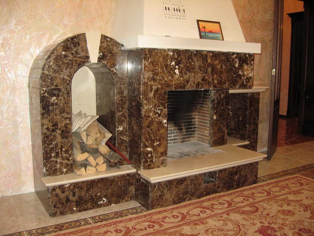 Таким образом, отделка нужна только для двух деталей камина – портала и дымохода. Но многие варианты подобных домашних печей могут содержать дополнительные элементы: отсеки для дров или декоративные полочки для мелких предметов.