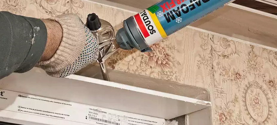 Заполнение деформационных просветов по периметру оконной рамы монтажной пеной