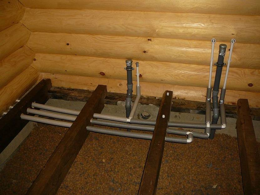 если трубы проходят в стенах и лагах через сквозные отверстия, то они должны быть большого диаметра с эластичными уплотнителями, которые бы не мешали их смещению;