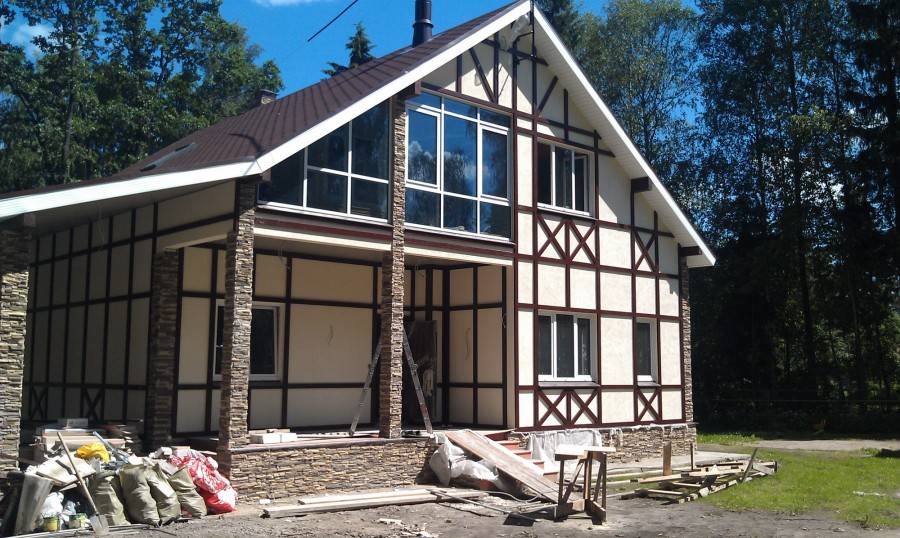 Не обойтись без отделки, когда дом построен из заведомо холодных материалов. Это любые сборные, панельные, каркасные постройки (в том числе европейский фахверк), пористый кирпич, брус и железобетонные конструкции. В холодное время года в таких постройках через стены и пол происходят большие теплопотери. Внутри помещения становится холодно, повышаются расходы на отопление.