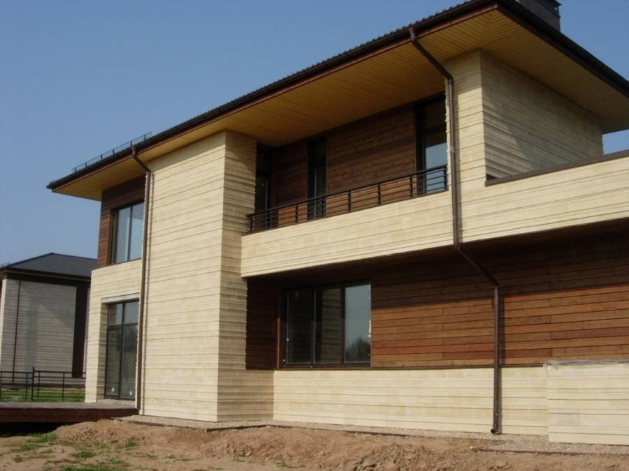 Эта отделка часто используется для домов ввиду наличия богатого ассортимента. Изделие способно имитировать любой природный материал, его цвет и структуру.