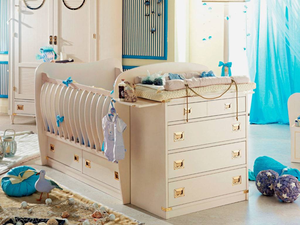 Позаботились производители мебели и о детских кроватках-трансформерах для новорождённых. Конструкция представляет собой комод со спальным местом и пеленальным столиком. Со временем при необходимости отдельные элементы могут отсоединяться и выполнять другие функции. Из пеленального может получиться письменный стол, а из комода – тумбочка. Для безопасности ребёнка кроватки оснащаются специальными бортиками.