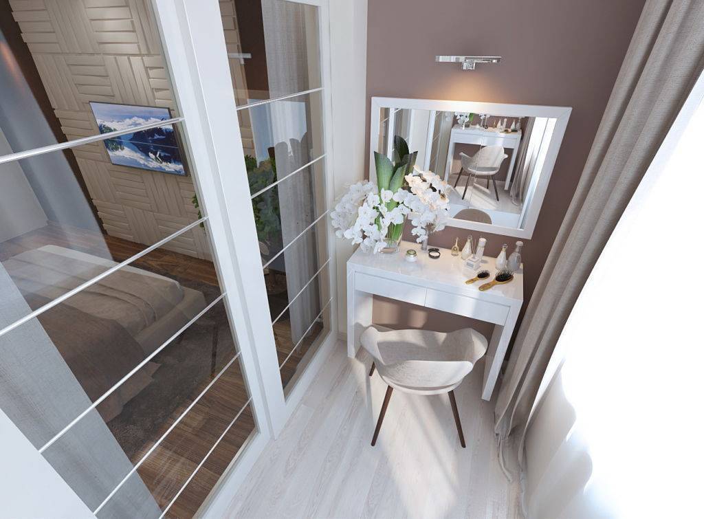 спальня, пространство как дополнительный уголок уединения. Столешницу объединяют с подоконником комнаты, и получается место для занятий вышивкой или чтения книг;