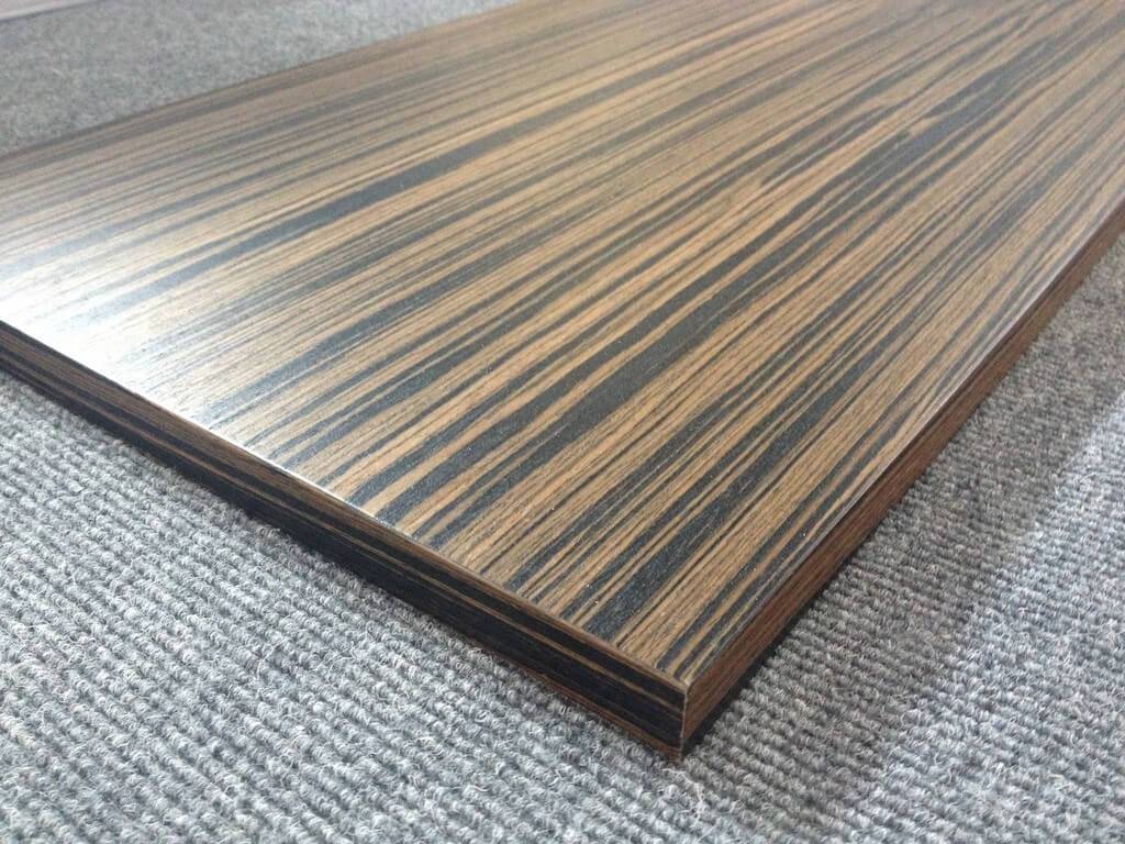 Плита покрывается шпоном, то есть тонким срезом натуральной древесины. Конечно, после этого поверхность не отличить от массива, но помимо этого повышается и качество. Шпон крепится с помощью клея, а специалисты называют это красивым словом «фанерование».