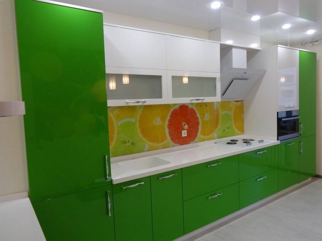 Стекло придает особую элегантность кухне, можно выбрать различные цветовые решения, не боится воды и температуры. Сложность очистки и низкая стойкость к ударам делают его менее привлекательным.