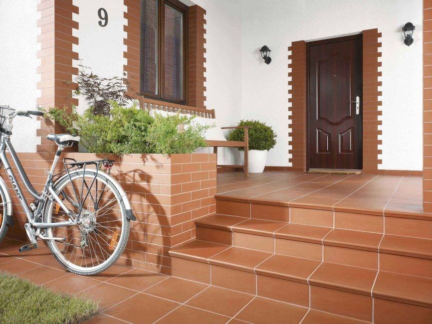 Дизайн крылечка напрямую зависит от стиля оформления самого дома – проект первого создают параллельно со вторым, соблюдая общий архитектурный стиль. Для удобства жильцов дверь располагается в трех-шести сантиметрах над уровнем пола. Ширина главной лестницы делается от одного метра, для боковых или расположенных в хозяйственных постройках – допустимы меньшие параметры. Оптимальные размеры ступенек: высота 15-25 сантиметров, ширина – 30-35 см. Отделочные материалы, используемые для декорирования входной группы, призваны не только создать уютную атмосферу, красивый внешний вид, но и защитить конструкцию от разрушения под влиянием атмосферных явлений, скрыть мелкие недостатки чернового покрытия. Наиболее часто используется: