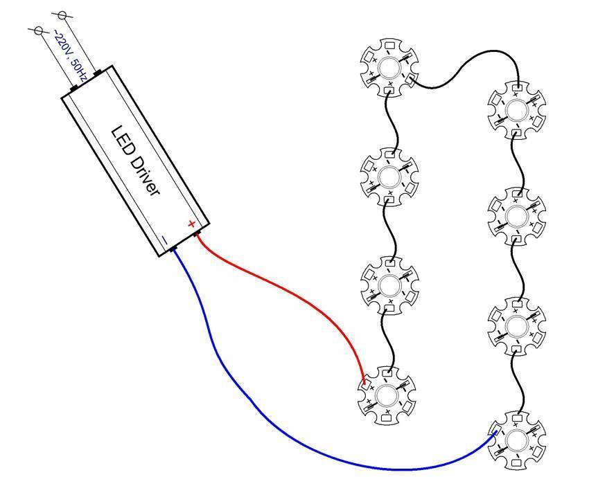 По законам физики и электротехники при параллельном соединении напряжение распределяется равномерно по всем потребителям, оставаясь неизменным на каждом из них. При последовательном монтаже поток делится и на каждом из потребителей оно становится кратным их количеству. Иными словами если взять 8 световых диодов, соединенных последовательно, они будут нормально работать от 12 В. Если же из подключить параллельно – они сгорят.