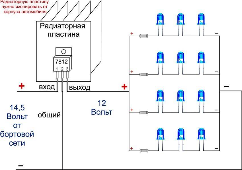 Подключение световых диодов на 12 В как самый оптимальный вариант
