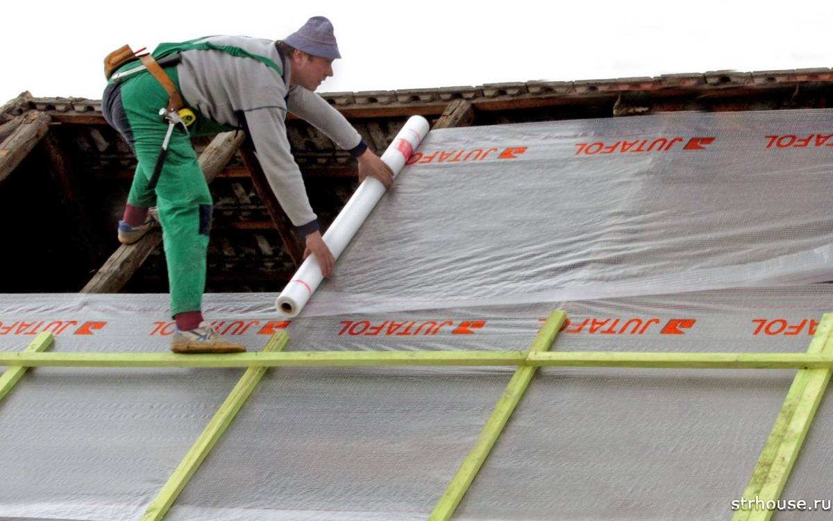 Важно учитывать, что значение имеет и то, какой стороной класть гидроизоляцию на крышу, ведь она задерживает влагу лишь в одном направлении. По этой причине укладывать материал на стропила следует стороной, на которой отсутствуют надписи или же в соответствии с указаниями, описанными в инструкции