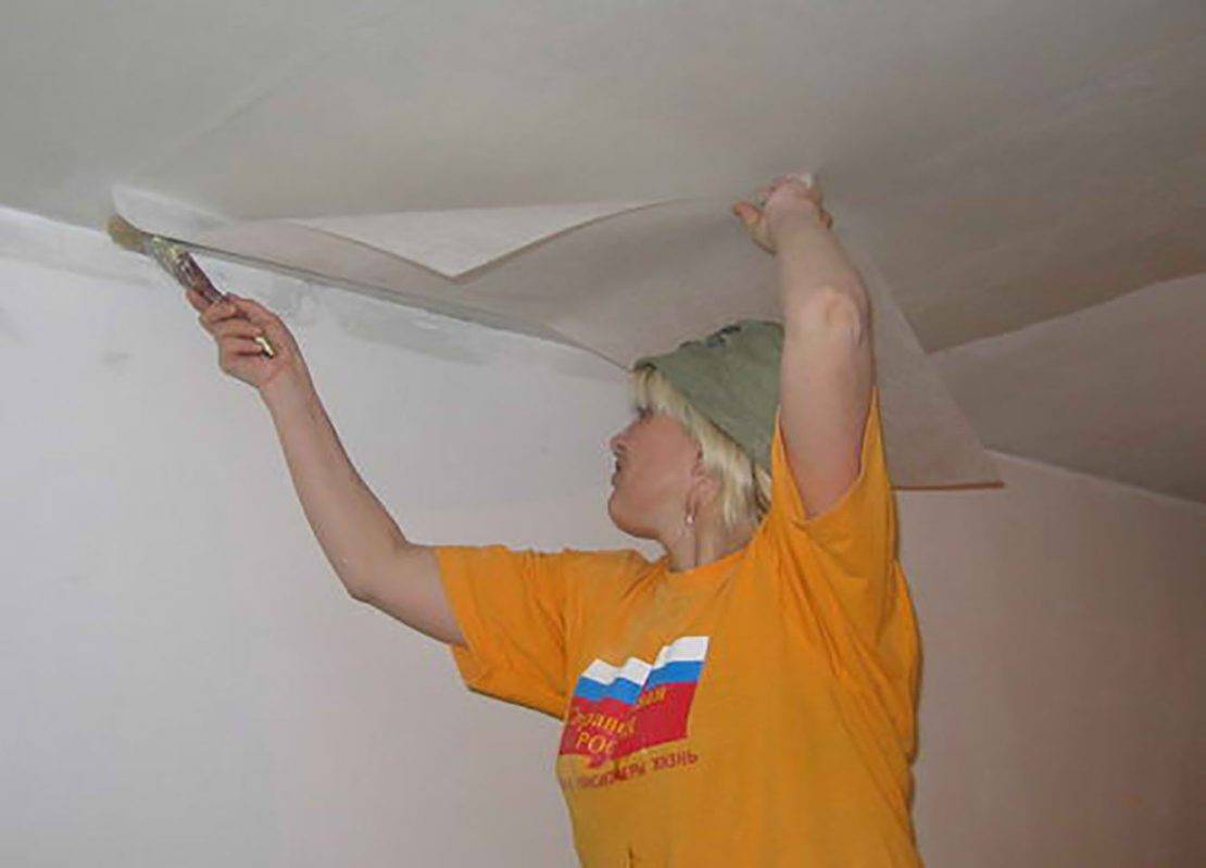 Потолок под стеклообоями окрашивают в такой последовательности:
