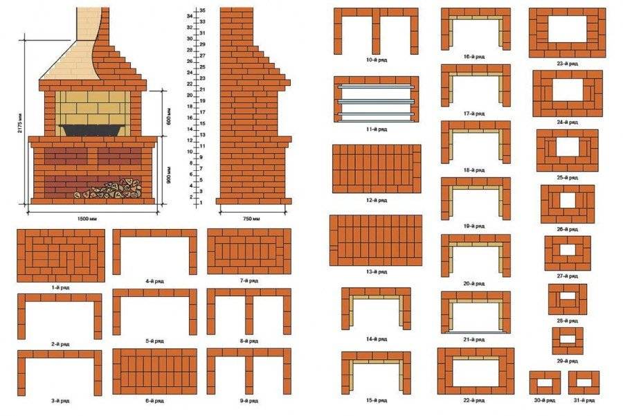 Порядовка кирпичного барбекю – фото поэтапной кладки от начального ряда, до дымоотвода
