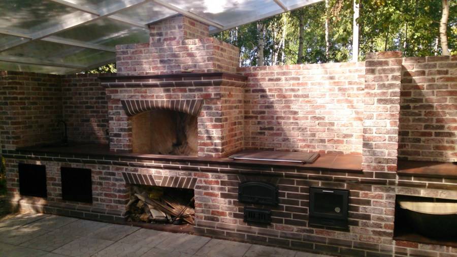 Буквальный перевод барбекю с английского — открытый огонь. Появившийся в ХХ столетий котел в виде полусферы придал этому типу очагов новый импульс. Печной комплекс может быть представлен в разных вариациях: