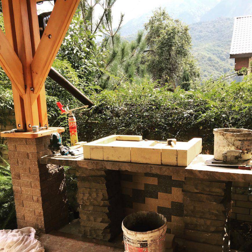 Первое, что нужно учесть — это высота расположения жаровни, варочной плиты, если она предусмотрена, а также поверхностей разделочных столов —для того, чтобы удобно было делать заготовки и жарить барбекю или шашлык.