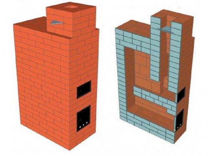 Конструкция классической дровяной печи из кирпича с прочистным окошком и без поддувала обеспечивает длительное горение дров и высокую теплоотдачу. Из-за относительной простоты монтажа устройства часто встречаются на практике.