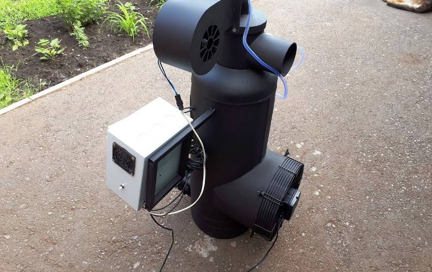 Гаражные умельцы, чаще всего применяющие эти печи на отработке, вносят в конструкцию множество изменений – изогнутый под 90° дожигатель, вторичная камера в виде бочки или стального теплообменника, приваренный бак для автоматического пополнения топлива и так далее. Это не меняет принцип работы агрегата и делается с одной целью — повысить эффективность отопителя и получить больше тепла.