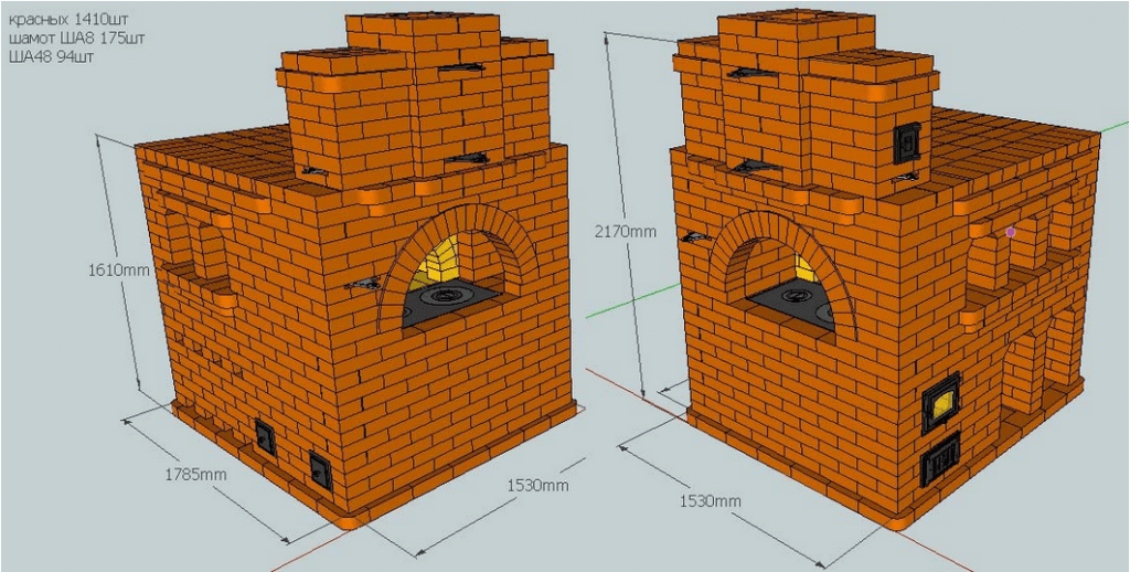 Рассмотрим порядовку кирпичной печи-шведки с духовкой своими руками.