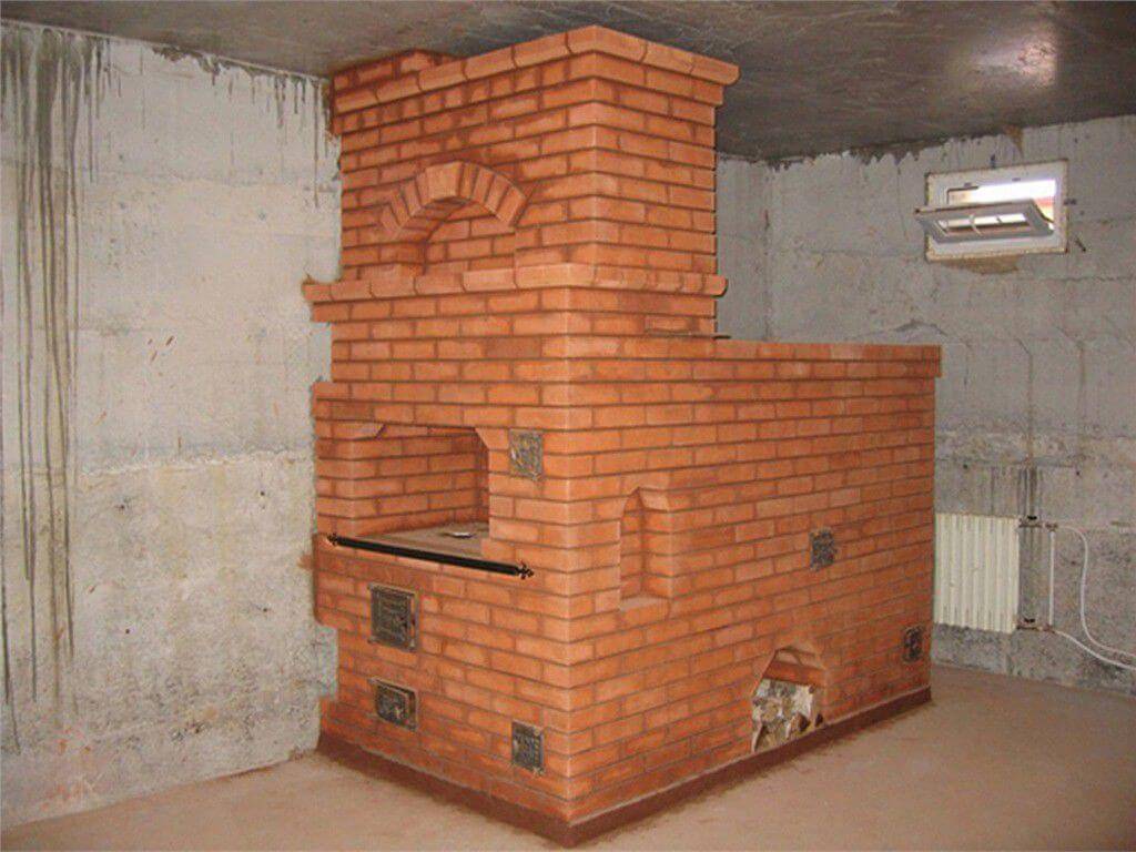 Оптимальной площадью отапливаемого помещения считается 40 кв. м. При кладке печи нужно использовать качественное сырье, а дверь камеры для топки должна быть обязательно литой.