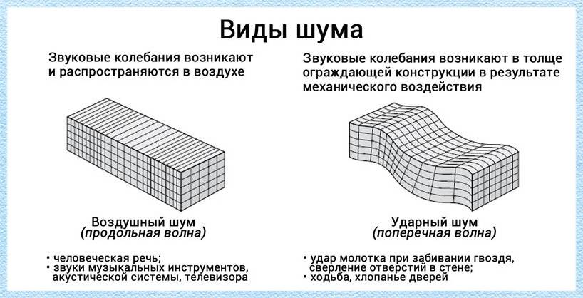 Причина воздушного шума — громкое звучание музыкальной аппаратуры, инструментов. Звук, попадающий на перекрытия, провоцирует колебания. Эти колебания и проникают в помещение. Звуковая волна в данном случае рассеивается, и звук распространяется на окружающие помещения.