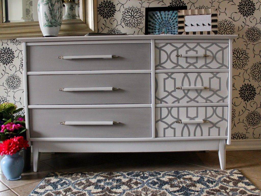 Интересный вариант украшения старой мебели, подойдет для тумбочек, комодов и шкафов. Перед нанесением такого декора необходимо отшлифовать поверхности и нанести акриловую краску. Для самого рисунка можно приобрести готовый набор для декупажа или воспользоваться обоями с интересным рисунком.
