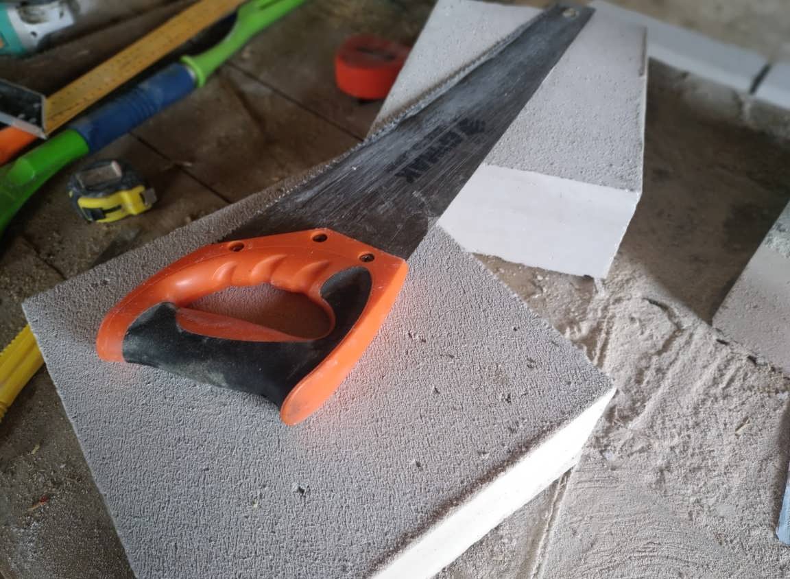 Резать газоблок легко можно обычной ножовкой по дереву. Отмечаете размер, чертите линию с помощью угольника и пилите на ровной поверхности.