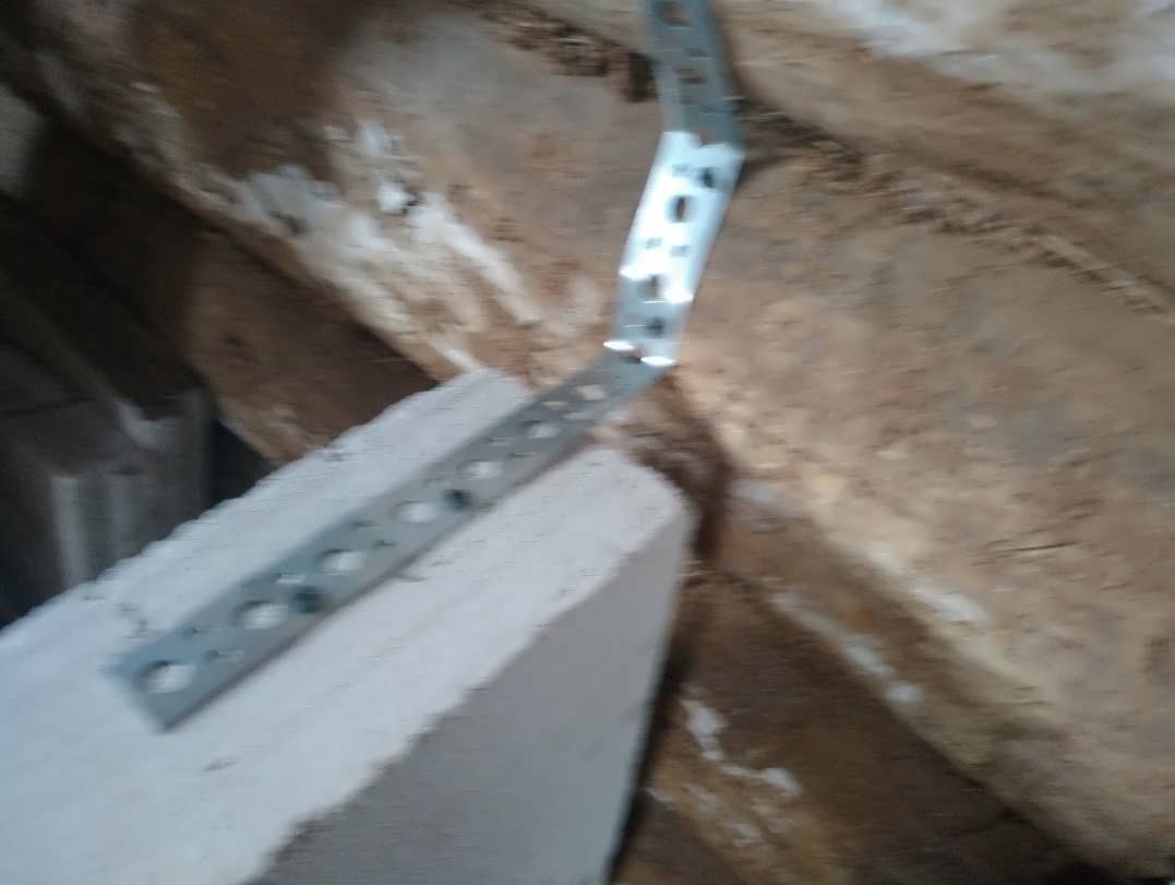 - Для фиксации соединения перегородок с основными стенами используются Т-образные анкера из периодической арматурной стали, оцинкованные перфоленты или пластины из нержавейки. Анкеровка производится не реже чем через метр по высоте. При необходимости в блоках устраиваются штробы, в которые прячутся анкерные элементы.